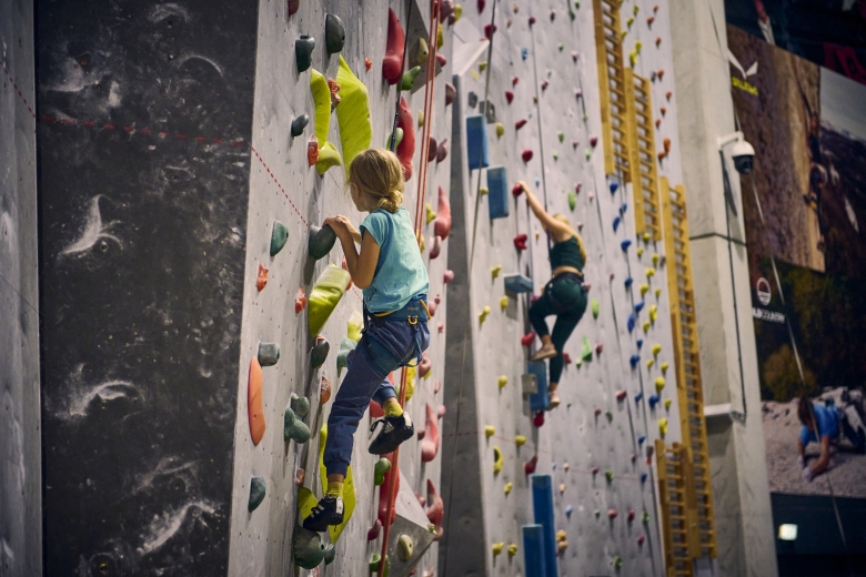 Oczywiście najłatwiej jest, kiedy dzieci są już duże i wyrażają zainteresowanie pięciem się w górę. Wtedy do ich dyspozycji są specjalne urządzenia do automatycznej asekuracji: dziecko wspina się po chwytach i stopniach lub po drabinie, asekurowane przez automat. Ty z dołu kibicujesz, dajesz rady i zachęcasz, żeby spróbowało swoich sił wyżej i dalej. Możesz zaangażować się jeszcze bardziej i zdobyć od naszych operatorów przeszkolenie w asekuracji na wędkę. Wtedy otwierają się przed Wami kolejne drzwi, kolejny krok w świat wspinania i dużo więcej dróg. To nic trudnego, najważniejsze jest, żeby dbać o bezpieczeństwo i słuchać uważnie operatorów ścianki wspinaczkowej.
