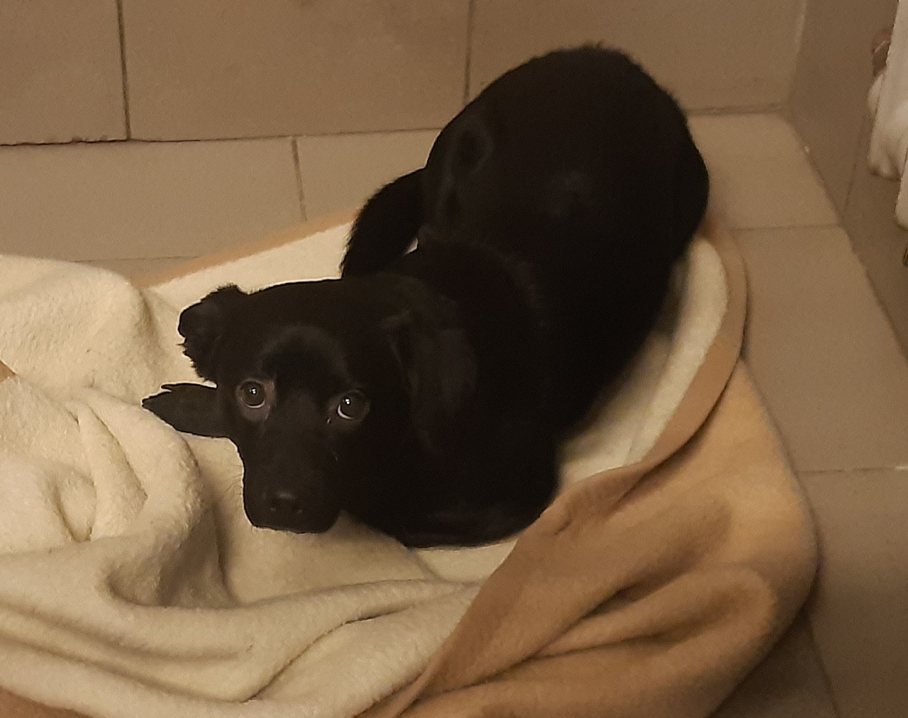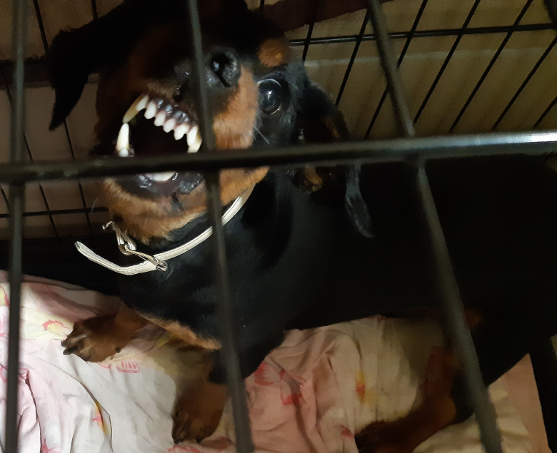 Na facebooku Schroniska zamieszczone zostały bardzo przejmujące zdjęcia. Na jednym z nich pies w panice odsłania kły, ze strachu gotowy ugryźć. Zgłoszony został do placówki przez pracowników jednej ze stacji benzynowych, w której ze strachu przed hukiem petard ukrył się za ladą. Po tym jak jego zdjęcie zostało pokazane na facebookowym profilu, jego właścicielka zdzwoniła do Schroniska żądając przywiezienia psa na koszt placówki. Po odmowie, kontakt z nią został utracony. Pies nadal jest wystraszony i niekontaktowy, ale nie próbuje już atakować. Wciąż jest nadzieja, że właścicielka po niego przyjedzie.