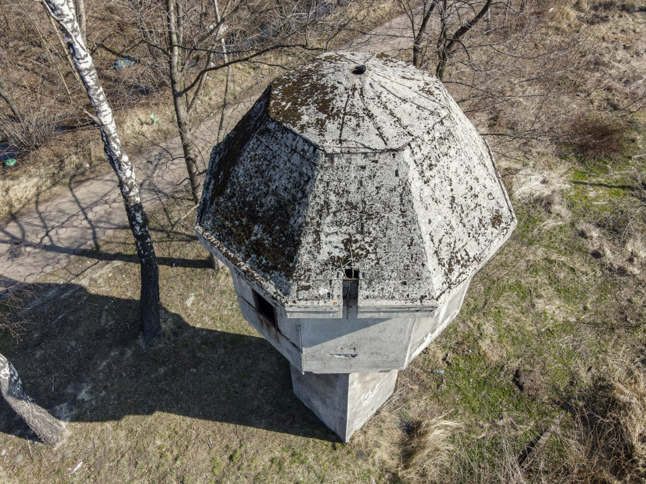 Głowica wieży ma kształt sześciokąta, a całość konstrukcji jest żelbetonowa. Przez dłuższy czas wieża stała w zaroślach, aczkolwiek od jakiegoś czasu teren jest uprzątnięty. Żelazne drzwi prowadzące do wnętrza są oryginalne.