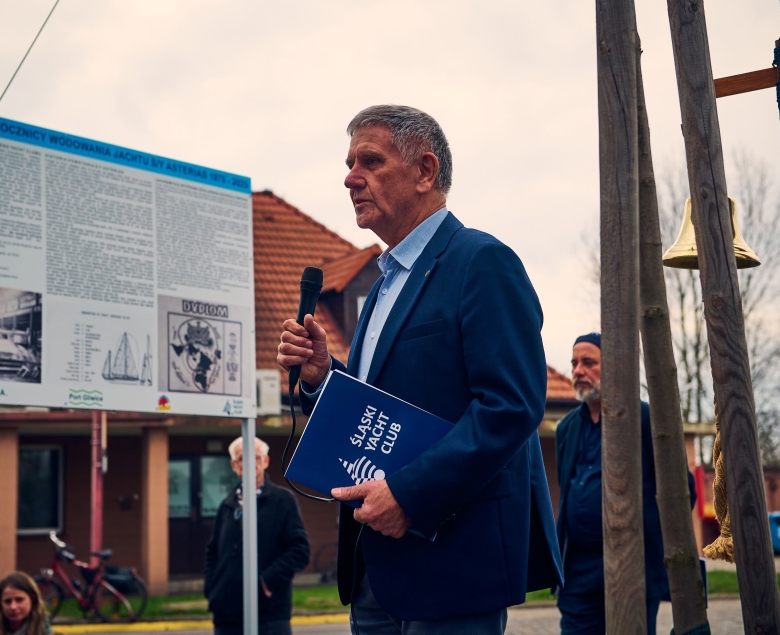 - Ahoj żeglarze - tymi słowami rozpoczął wydarzenie komandor Śląskiego Yacht Clubu, Grzegorz Kuźniak. - Spotkaliśmy się tutaj, by celebrować 50. rocznicę wodowania jachtu Asterias, ale chciałbym przypomnieć, że oczywiście najważniejsi byli ludzie, którzy doprowadzili do tego wyjątkowego wydarzenia - dodał, w dalszej części wydarzenia wręczając honorowym gościom pamiątkowe zdjęcia Asteriasa.
