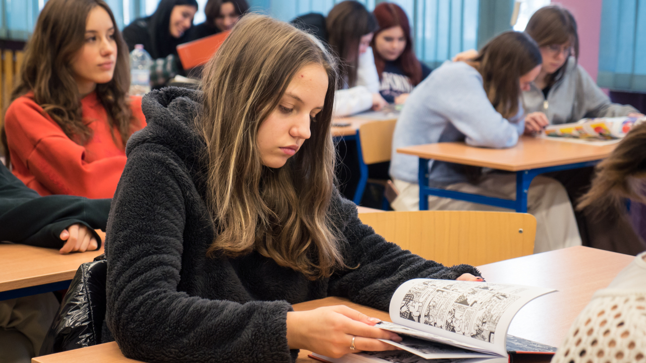 W projekt włączyli się także twórcy związani z teatrem Lufcik na Korbkę, którego dyrektorką jest Agnieszka Batóg. Młodsze dzieciaki spotkały się z Mateuszem Świstakiem. Narratolog nie tylko przybliżył im świat komiksu, tworzenia opowieści i zdań bardzo wielokrotnie złożonych, ale także zabrał w pełną radości podróż do świata bajek polskich Romantyków. Aktorka i logopedka, specjalizująca się w pracy z ludźmi dorosłymi, Anna Koźlik opracowała rozszerzenie do bloku „odpowiednie dać rzeczy słowo” w formie online. Jest ono dostępne w zasobach V LO oraz na kanale youtube Teatru Lufcik na Korbkę.