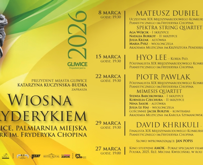 27 marca | godz. 19:00 – Seans w Kinie Amok Filmowe dopełnienie festiwalu. W kinie studyjnym Amok zostanie wyświetlony film „Chopin, Chopin!” w reżyserii Michała Kwiecińskiego – nowatorskie spojrzenie na postać kompozytora.
