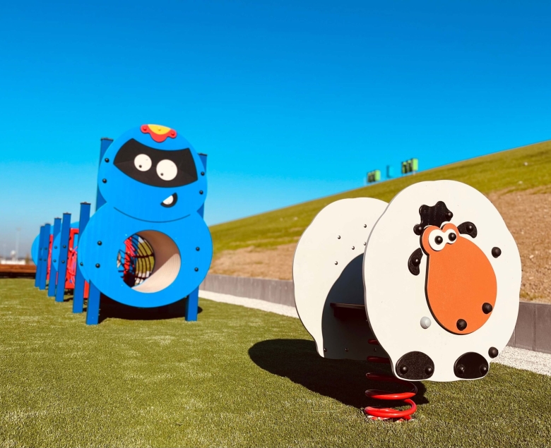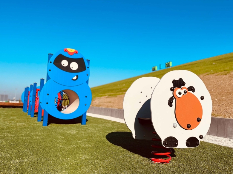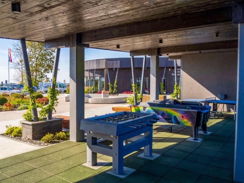 - dwa place zabaw – pod dachem, gdzie można: zagrać w piłkarzyki, cymbergaja i rozegrać mecz tenisa stołowego, wejść na ściankę wspinaczkową oraz pod chmurką, gdzie z kolei czekają: pergola z leżakami wypoczynkowymi, amfiteatr, bujaki w kształcie zwierząt, tunel z wizerunkiem śMietka, szachownica XXL, bulle,