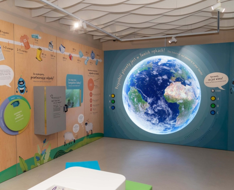 - interaktywną wystawę multimedialną składającą się z gier, animacji, edukacyjnych treści oraz infografik z ciekawostkami przyjaznego robocika śMietka,