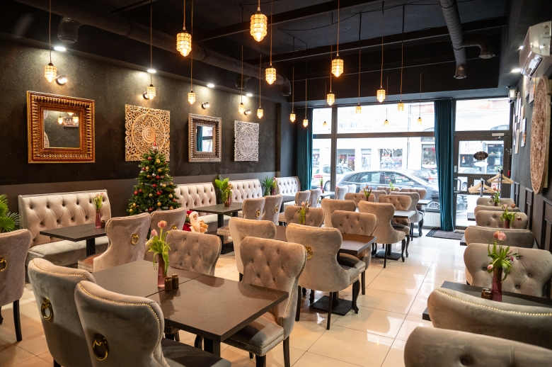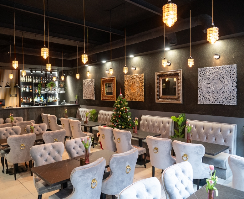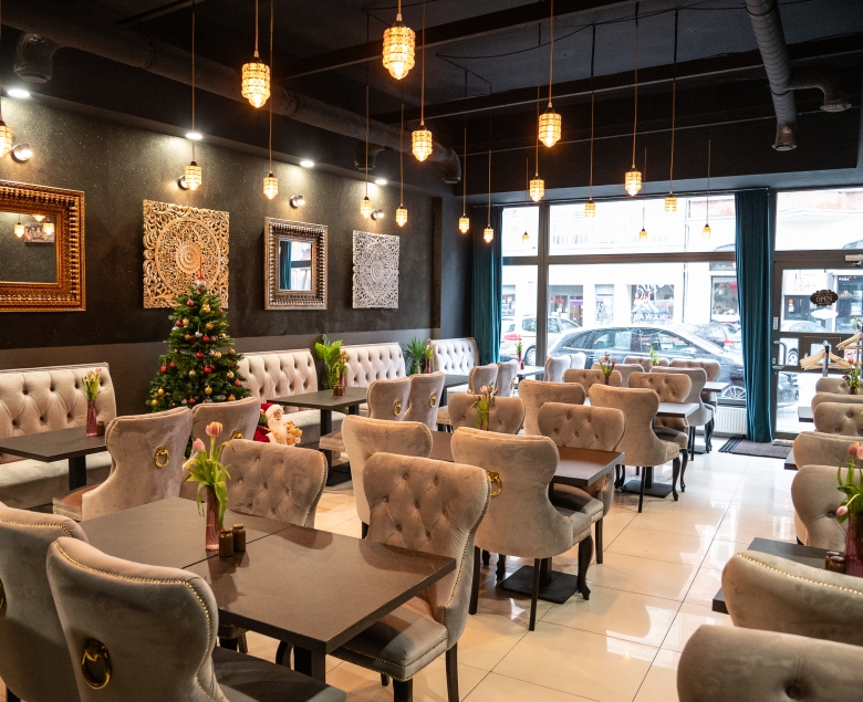 We wnętrzu restauracji wzrok przykuwa dbałość o detale. Wystój nie przytłacza, ale tworzy atmosferę ciepła i elegancji, zgodną z tym, co na talerzu. Dużo tu ciepłych barw, delikatnych akcentów nawiązujących do Indii i rozwiązań, które sprawiają, że gość po prostu czuje się dobrze. Do tego obsługa, która potrafi opowiedzieć o potrawach, doradzić i zadbać o komfort w sposób nienarzucający się, ale naturalny.
