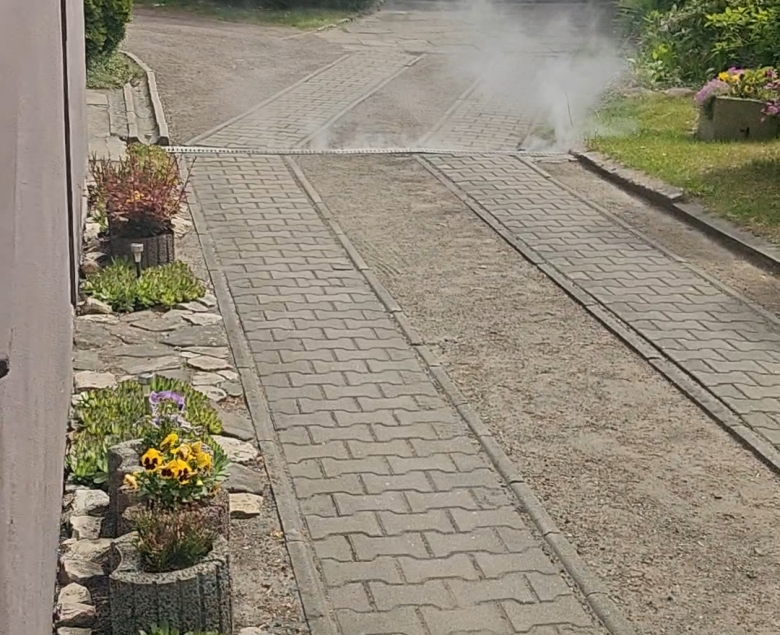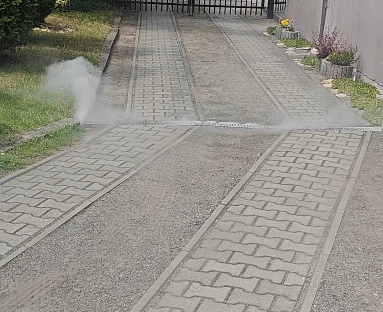 Po uruchomieniu zestawu kontrolerzy z PWiK obserwują miejsca, w których dym się wydostaje. Jeżeli pojawi się on np. przy rynnie lub kratce wpustu deszczowego, może to świadczyć