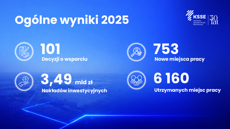 W 2025 roku KSSE wydała 101 nowych decyzji o wsparciu. Zgodnie z deklaracjami inwestorów, realizowane projekty mają przynieść 753 nowe miejsca pracy, a łączna wartość inwestycji wynosi 3 mld 488 mln zł. W porównaniu z 2024 rokiem oznacza to wzrost liczby decyzji o 10 procent oraz wzrost deklarowanych nakładów inwestycyjnych o 28 procent.