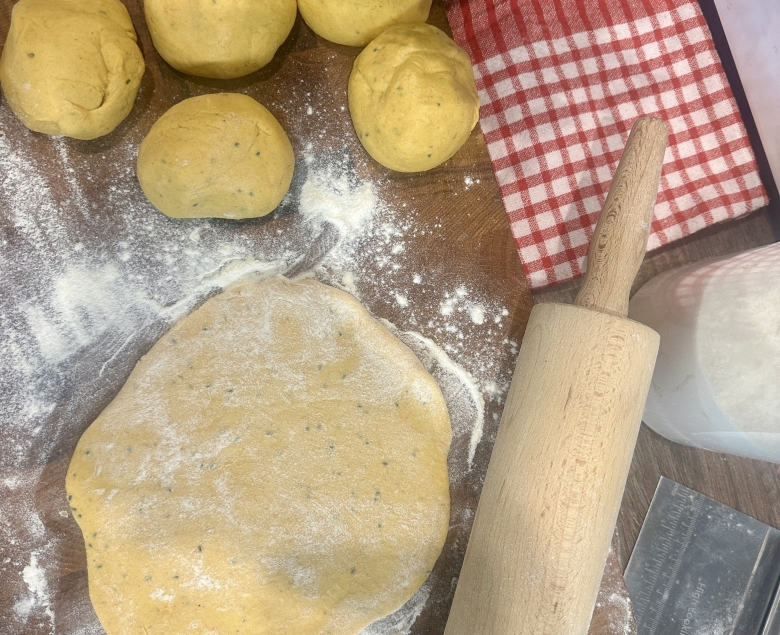 Pieczywo, które wspólnie przyrządzimy pamięta już czasy starożytności. Wędrowcy, pasterze i wojownicy zabierali je w drogę, bo były szybkie do przygotowania, sycące i długo zachowywały swą świeżość. Podpłomyk to jedno z tych dań, które było czymś zupełnie codziennym, plackiem wypiekanym na rozgrzanych kamieniach, blasze lub w piecu chlebowym. Dziś wraca do nas jako sentymentalna podróż do kuchni oraz świetna podstawa do nowoczesnych kulinarnych wariacji. Wyróbmy te ciasto ręcznie by przez chwilę poczuć się jak dawniej!