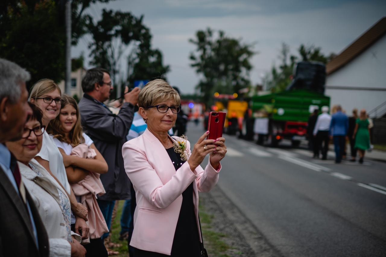 Ale dech w piersiach zapierały nam jednak dożynkowe korony (z Kozłowa, Smolnicy, Sierakowic, Sośnicowic i Łanów Wielkich), niesione przez kobiety z kół gospodyń wiejskich, korony przepiękne i dopracowane w najmniejszym detalu. O nich mówił zresztą potem burmistrz jako o symbolicznym przywiązaniu do narodowej tradycji.