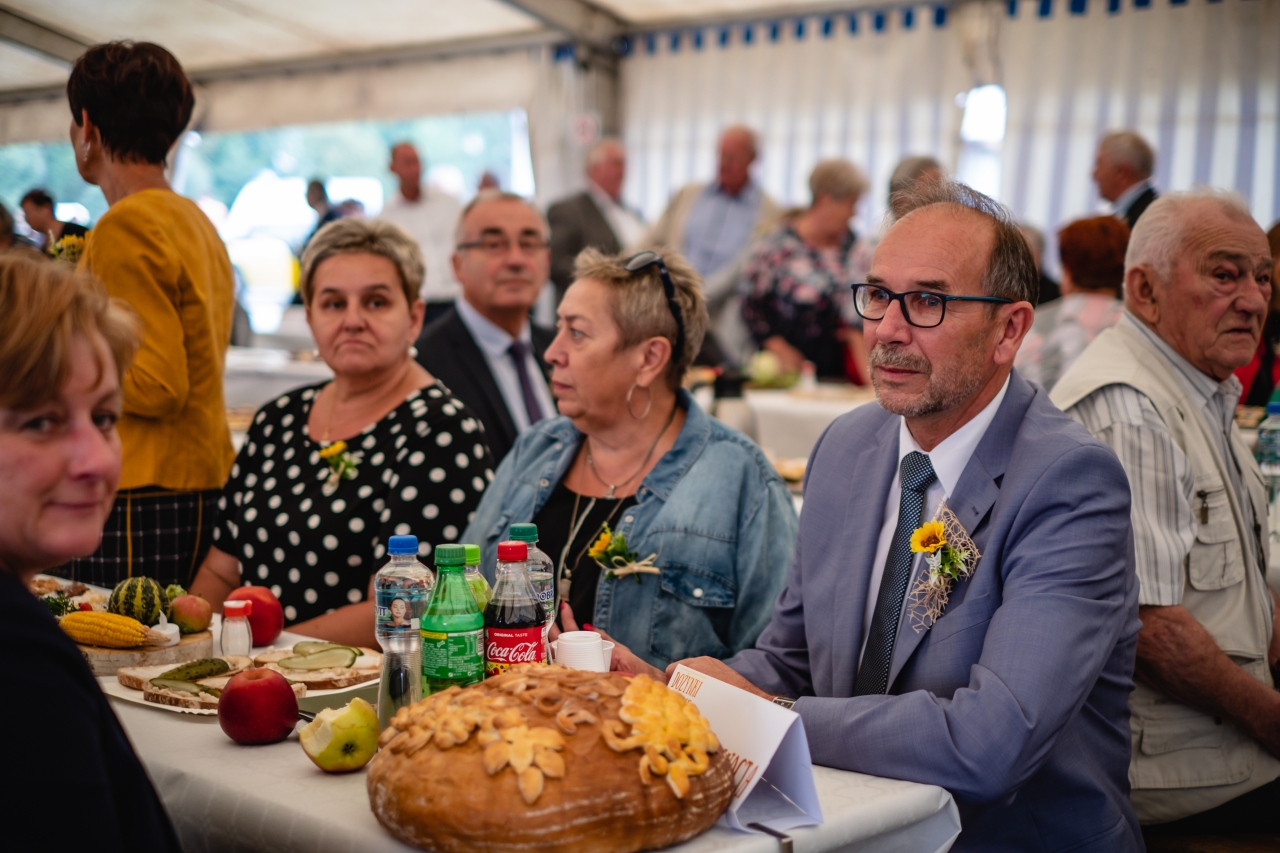 Tradycją każdych dożynek jest wręczenie bochna chleba, i to chyba punkt święta najważniejszy. O chlebie tym mówił burmistrz, o tym, jak istotna jest jego rola na stole w każdym domu, w codziennym życiu każdego Polaka. I chleb ten, w imieniu wszystkich rolników, przekazali włodarzowi gminy starostowie, z kolei burmistrz, symbolicznymi bochenkami, obdarował sołtysów. Duży bochen podzielono zaś i rozdano uczestnikom dożynek.
