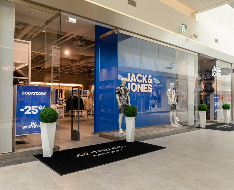 Salon JACK&JONES ma nowoczesny wystrój, który pozwala na jak najlepsze zaprezentowanie kolekcji w poszczególnych kategoriach. Dominują kolory szarości, połączone z naturalnym drewnem, metalem i mocnymi, niebieskimi akcentami. Ekspozycję poszczególnych produktów wspiera punktowe, ciepłe światło. Dla klientów przygotowano przestronne przymierzalnie. - Witamy tę wyjątkową markę mody męskiej w przestrzeniach FACTORY Gliwice. JACK&JONES debiutuje w naszym centrum w pierwszych dniach letnich wyprzedaży. Wierzę, że szybko zyska pokaźną grupę klientów, którzy cenią ubrania łączące swobodę i elegancję – mówi Małgorzata Pastuszka, dyrektor FACTORY Gliwice.