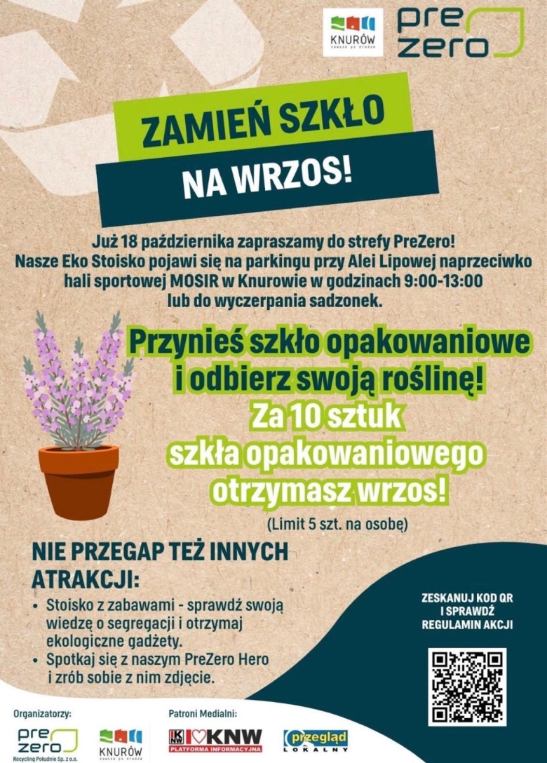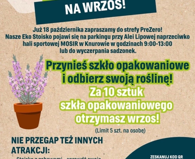 To jedna z takich akcji promujących ekologię, która cieszy się sporym zainteresowaniem. 18 października w Knurowie mieszkańcy wymieniali 10 sztuk opakowań szklanych na piękny wrzos, a na miejscu czekała strefa zabaw, quizy o segregacji i pamiątkowe zdjęcia.