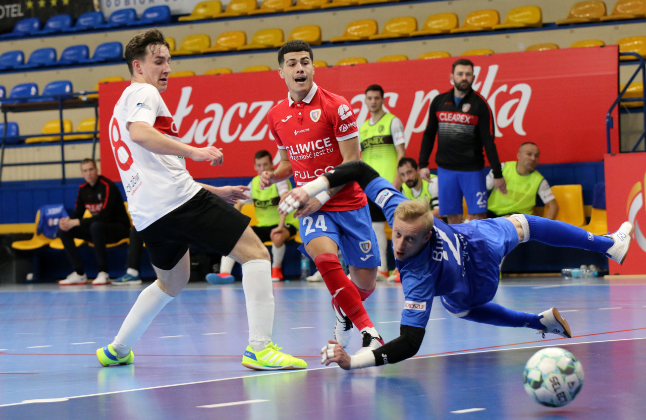 Sytuacja w Clearexie jest ostatnio trudna. Z prowadzenia drużyny zrezygnował Mirosław Miozga, a zastępujący go w meczu z Piastem Rafał Krzyśka nie mógł skorzystać z trzech podstawowych zawodników: Przemysława Dewuckiego i Sebastiana Leszczaka oraz Mikołaja Zastawnika. Mimo tych problemów gospodarze odważnie rozpoczęli spotkanie i mieli szansę na objęcie prowadzenia. Piast szybko opanował sytuację i w przeciągu 200 sekund strzelił dwa gole. Najpierw, w 6. minucie, Rodrigo Dasaiev idealnie dograł do Rafała Franza, a grający dyrektor sportowy dołożył tylko nogę. Trzy minuty później niebiesko-czerwoni podwyższyli prowadzenie. Autorem gola był Michał Rabiej. Clearex chcąc awansować do finału musiałby strzelić aż sześć goli, nie tracąc żadnego.