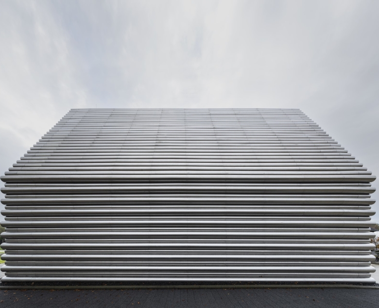 - Fasada ostatecznie nie została wykonana z rur Gambit funkcjonujących zazwyczaj pod ziemią, bo okazało się, że utleniają się pod wpływem promieni UV, a dodatkowo nie spełniają wymogów ppoż. Sięgnęliśmy więc do taniej, surowej blachy aluminiowej, która z biegiem lat matowieje. Rury na krawędziach budynku zostały zaślepione, by nie dźwięczały przy wietrze. Siatki, jakimi miały być wypełnione, po naszych namowach nie zostały zrealizowane, bo przekonaliśmy właścicieli, by mogły pełnić też funkcję domków dla ptaków – opowiada architekt.