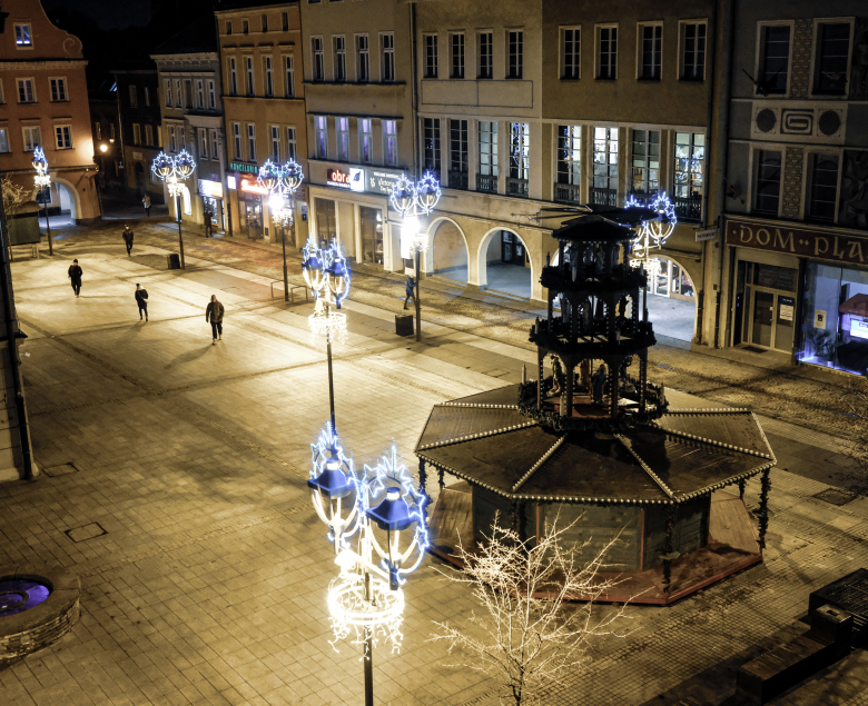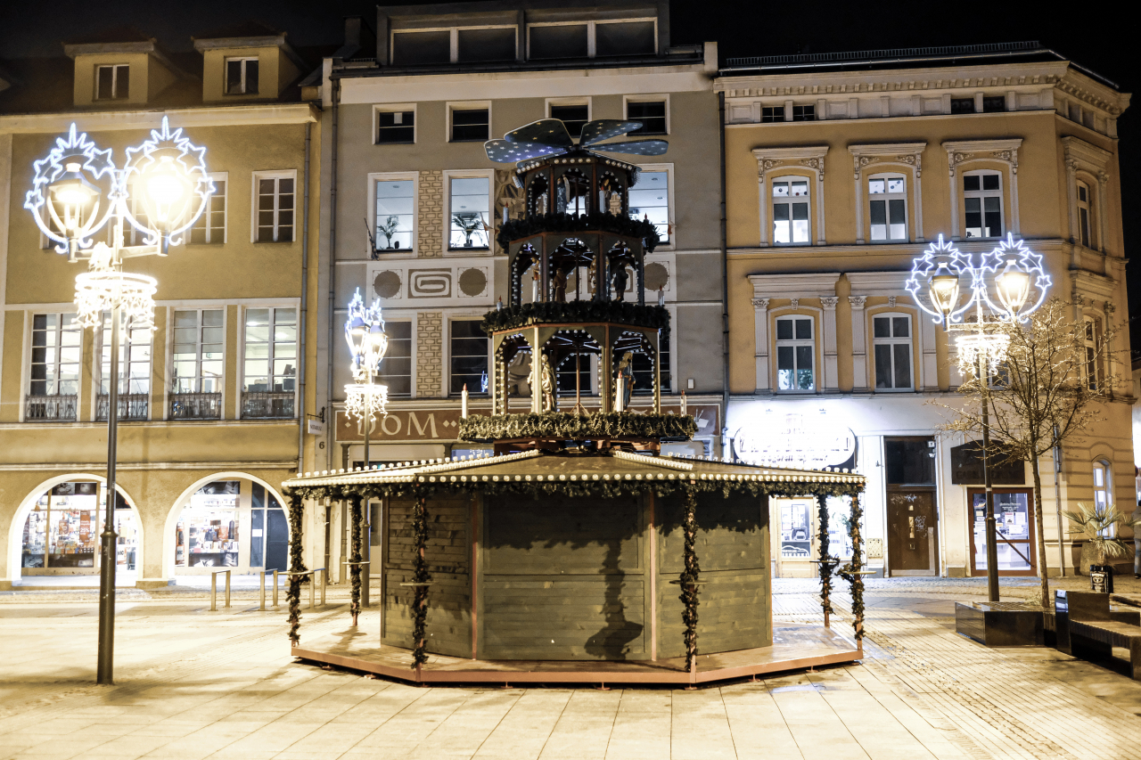 Specjalną oprawę zyska Rynek – latarnie przyozdobią świetlne iluminacje, na balkonie Ratusza stanie kolejna choinka, a przed nim bożonarodzeniowa szopka – jej budowa już trwa. W okresie okołoświątecznym, podczas Gliwickiego Jarmarku Bożonarodzeniowego, Rynek będą zdobić również m.in. świąteczne stoiska, karuzela wiedeńska i świąteczna piramida zamocowana na największym z jarmarcznych domków.