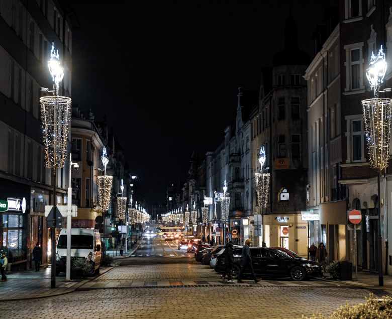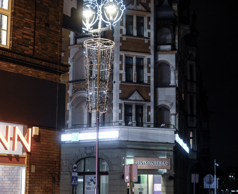 Świetlne tunele staną w miejscu fontanny na placu Piłsudskiego oraz na placu Grunwaldzkim, gdzie pojawi się też nowość – między gałęziami drzew zawiśnie efektowna girlanda (to zadanie o wartości prawie 229 tys. zł realizowane jest w ramach Gliwickiego Budżetu Obywatelskiego 2021).