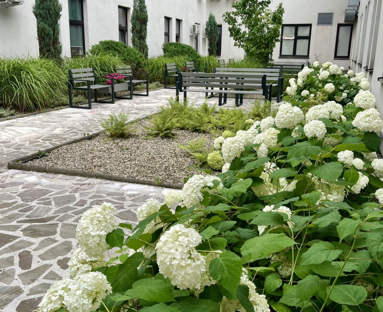 A jeśli mama chce oderwać się na chwilę od szpitalnego rytmu dnia, może usiąść w przytulnej kawiarence bądź ukwieconym patio na poziomie -1. Filiżanka herbaty w tak miłym otoczeniu może zdziałać prawdziwe cuda