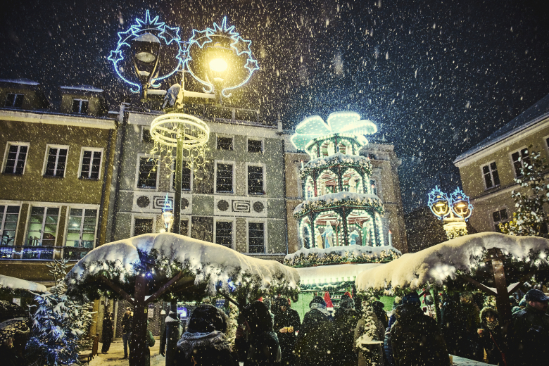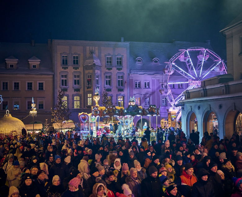 Kiermaszowe stoiska na Rynku czynne będą do 22 grudnia – od niedzieli do czwartku w godz. 12.00–20.00, a w piątki i sobotę w godz. 12.00-22.00. Pełne są piernikowych serc, propozycji prezentów gwiazdkowych, ozdób choinkowych, a nawet potraw na wigilijny stół. Do tego czekają cieszące nie tylko oko atrakcje: bożonarodzeniowa szopka, ciuchcia świąteczna, karuzela wiedeńska, rozświetlone koło młyńskie oraz wieża serwująca aromatyczne grzane wino.