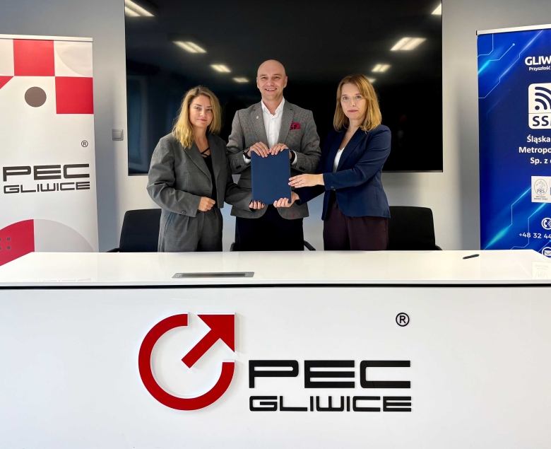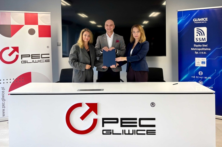 Prezes Zarządu Śląskiej Sieci Metropolitalnej Sp. z o.o. Agnieszka Olbrycht-Banach wraz z Prezesem Zarządu Przedsiębiorstwa Energetyki Cieplnej – Gliwice Sp. z o.o. Krzysztofem Szalińskim oraz Wiceprezes Zarządu ds. finansowych Patrycją Jurkiewicz-Cygan podpisali umowę, której celem jest zapewnienie wysokiego poziomu odporności systemów cyfrowych PEC na zagrożenia obecne w przestrzeni technicznej.