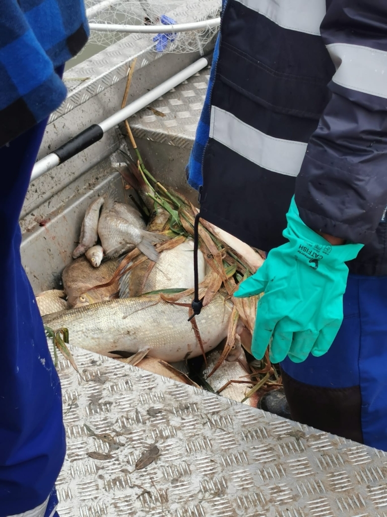 W oficjalnych komunikatach za ten stan rzeczy winą obarczany jest zakwit złotej algi (Prymnesium parvum). W odpowiedzi na rosnące zagrożenie, zapadła decyzja o przeprowadzeniu eksperymentu z wykorzystaniem nadtlenku wodoru (H2O2), który miałby zneutralizować złotą algę.