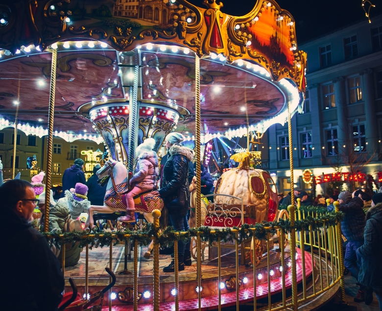 W weekendy jarmarkowa scena wypełni się muzyką i animacjami. Nie zabraknie tańca, wspólnego kolędowania i wzruszeń. Dla poszukujących wrażeń przez cały czas trwania jarmarku dostępne będą karuzela wiedeńska i koło młyńskie (atrakcje płatne).