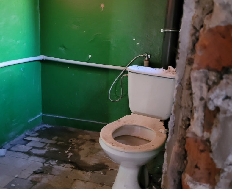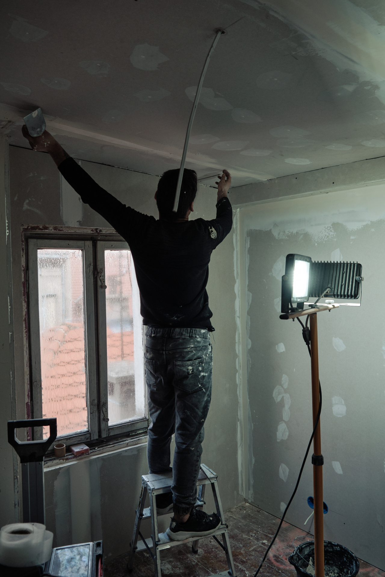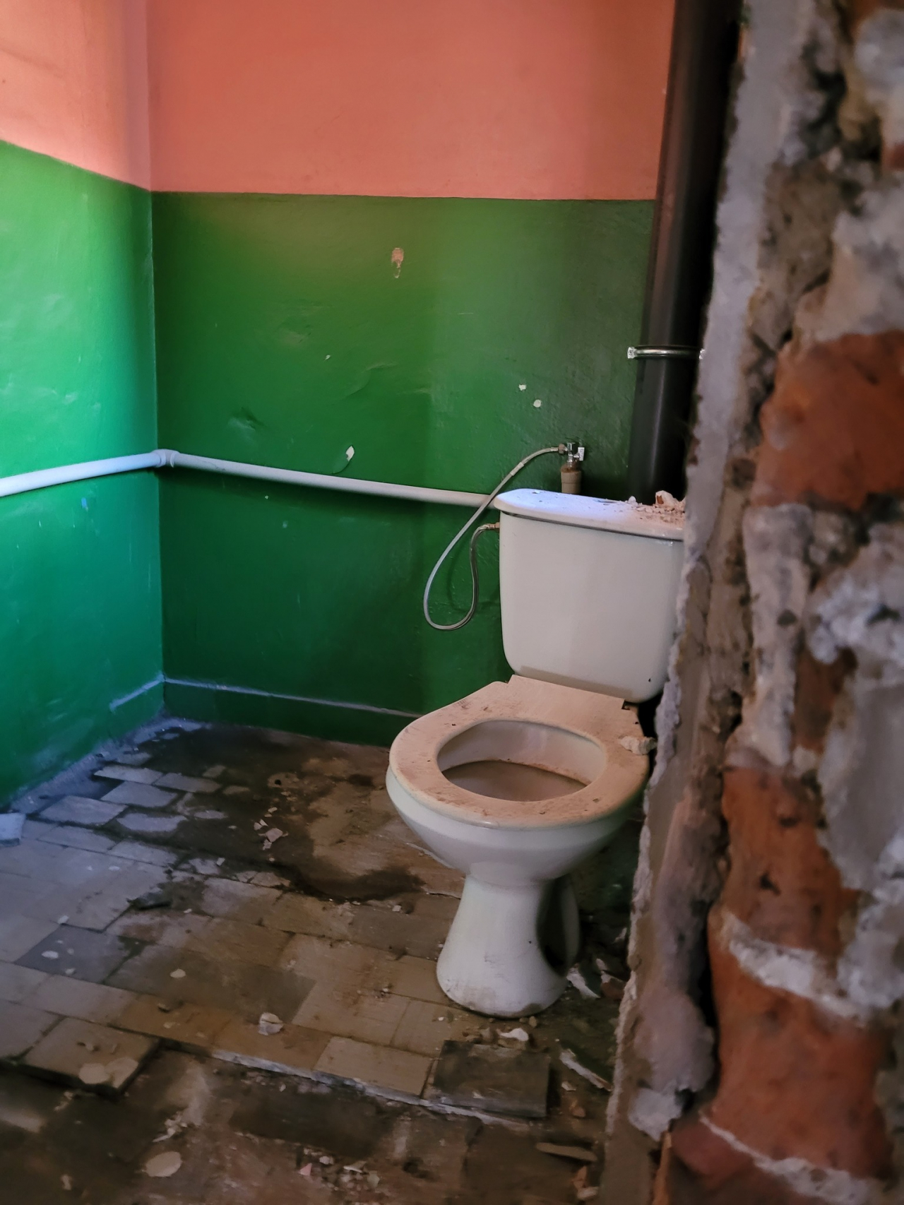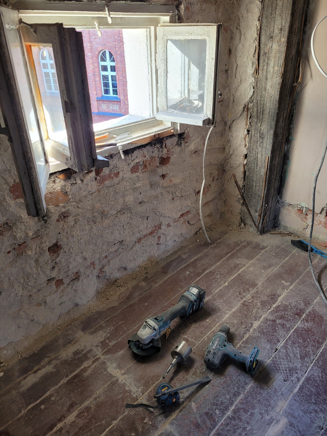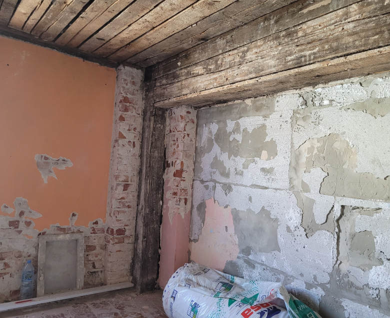 Kurz unoszący się nad gruzem i wzlatujący z powierzchni wierconych ścian wgryza się w oczy. Antycovidowa maseczka przydaje się może i bardziej, niż podczas pandemii.