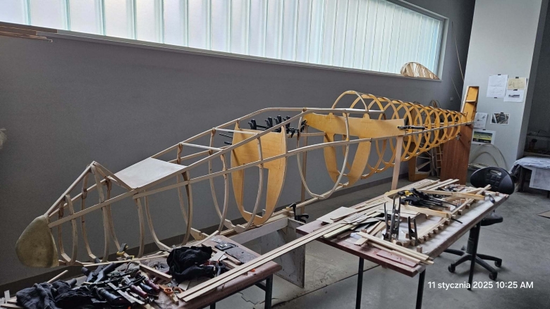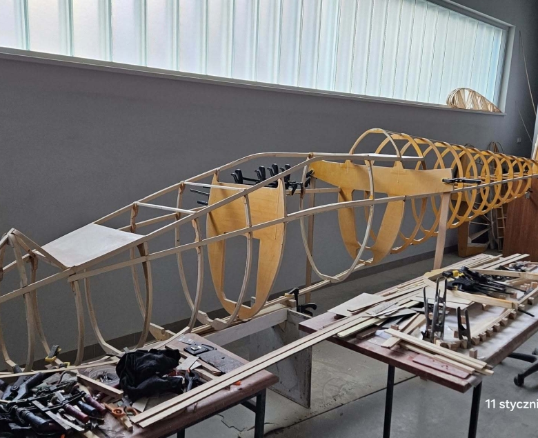 W hangarze Aeroklubu Gliwickiego pracuje właśnie nad repliką Mewy – szybowca zaprojektowanego w 1936 roku przez Antoniego Kocjana. To projekt wymagający. Mewa ma konstrukcję dwumiejscową, jest większa od Salamandry, a dokumentacja nie zachowała się w pełni. Każdy etap to osobne zadanie: od przerysowania planów po ręczne wykonanie szablonów.
