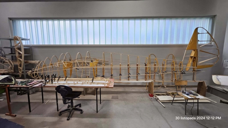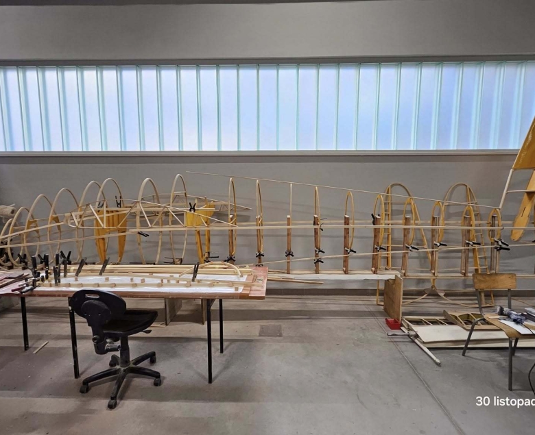 Materiały to drewno brzozowe i sosnowe, tak jak w oryginale. Sosna – tylko z białej części, dobrze sezonowana, bez sęków. Listewki schną na wolnym powietrzu, pod dachem, czasem przez kilka lat. Z nich powstają elementy, które będą przenosić obciążenia w czasie lotu. Tu nie ma miejsca na niedokładność.