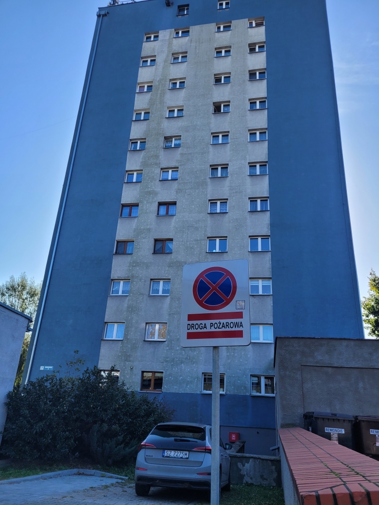O pomoc zgłosili się do nas mieszkańcy bloku przy ul. Chorzowskiej 3. Niedawno w obrysie od lat użytkowanego przez nich parkingu Spółdzielnia Mieszkaniowa „Śródmieście” wytyczyła drogę pożarową. Droga pożarowa jest oczywiście ważna, ale w tym przypadku zwęża parking do rozmiarów uniemożliwiających manewr dwóm zaparkowanym naprzeciw siebie samochodom. Co więcej, gdy samochody zostaną zaparkowane zgodnie z nowymi zasadami, osoba niepełnosprawna nie dostanie się na przeznaczone dla niej miejsce lub, jeśli już na nim parkuje, nie wydostanie się z niego.