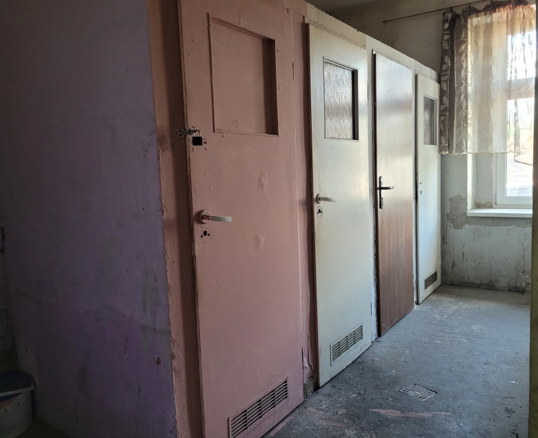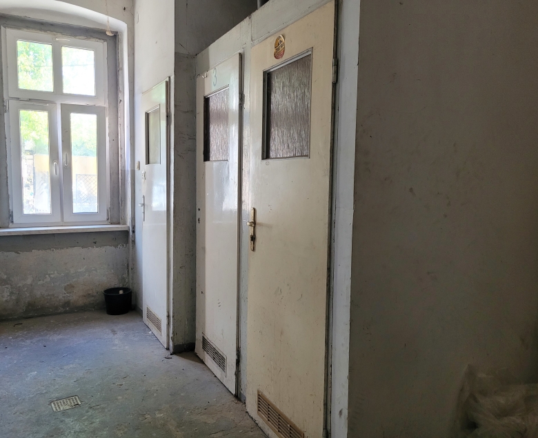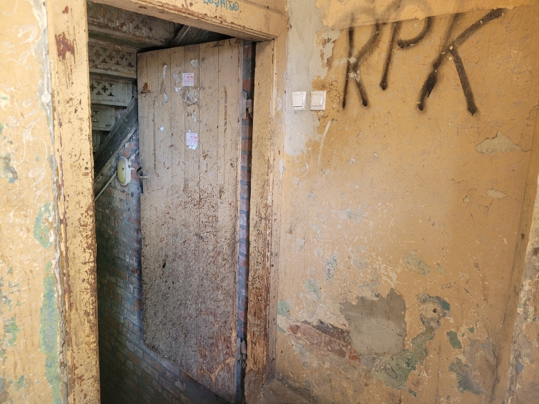 - Miasto zastanawiało się, czy ten budynek ma iść do rozbiórki, czy do remontu. Ponieważ w przypadku rozbiórki trzeba by było nowy budować, a to koszt kilku milionów, to postanowili, że za kilkaset tysięcy wyremontują. Stwierdzili, że zrobią toalety w mieszkaniach, bo w klatce obok zrobili już niemal 10 lat temu toalety na półpiętrach – relacjonuje nasz przewodnik.