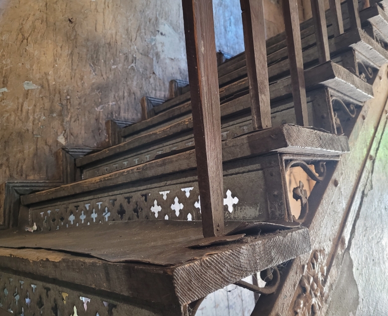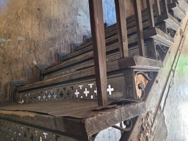 O tym, że to miejsce nie widziało remontu od dekad, świadczą ściany, pociągnięte wałkiem z ornamentem, relikt mody lat 70.-80. Schody nie wyglądają bezpiecznie – zwłaszcza podwinięte fragmenty okładziny, o które mogą się potknąć starsi mieszkańcy lub zbiegające ze schodów dzieci. Podwórze nie wygląda lepiej. Tabliczka informująca o możliwości zawalenia się muru jest jedynym zabezpieczeniem dla osób, które znajdują się w jego zasięgu.