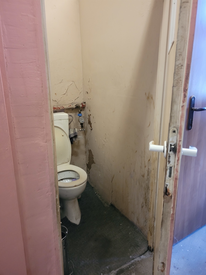 Gdy poruszona tym, co zobaczyłam opowiadam znajomym o tejże kamienicy, słyszę „Jak u serialowych Kiepskich”. Otóż nie, mili Państwo, na filmie Kiepscy mieli toaletę na piętrze. W tym budynku wszystkie ubikacje umieszczone zostały w rządku w jednym pomieszczeniu na parterze bloku. Nie ważne, czy ktoś mieszka na pierwszym czy na ostatnim piętrze. Za potrzebą musi deptać po schodach do wspólnego lokalu na dole. W dzień, w nocy, latem czy zimą, dorośli, dzieci, mieszkańcy i goście korzystają z jednego pomieszczenia z kluczem do przydzielonej lokalowi toalety. A zapach? Tu zostawię miejsce dla Waszej wyobraźni.