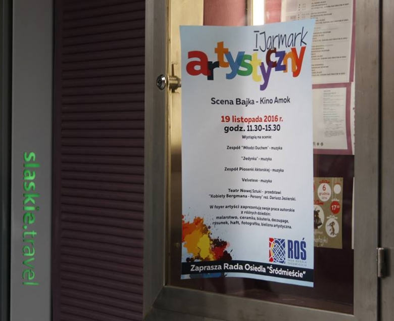 -Chcieliśmy zorganizować festyn dla mieszkańców śródmieścia – mówi Bieniek - Nasza dzielnica nie ma terenów otwartych, jak większość osiedli w naszym mieście. Jest wprawdzie park Chopina, ale w listopadzie pogoda jest przeważnie niesprzyjająca, więc bezpieczniej było zorganizować imprezę pod dachem. Stąd pojawiła się lokalizacja: Kino Amok – Scena Bajka. W tak zacnych murach, aż się prosiło zorganizować spektakl artystyczny. Po burzy mózgów postanowiliśmy, że będzie to spotkanie artystów z różnych dziedzin sztuki. Powstała też nazwa jarmark artystyczny, a ponieważ chcemy kontynuować ten pomysł, stąd jedynka z przodu. Zamierzamy promować rodzimych artystów, którzy są na początku swej drogi, albo tych, którzy mają już swoje osiągnięcia.