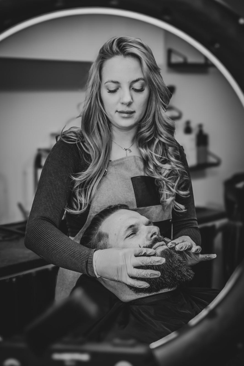 Zaczyna się od klasycznego strzyżenia, gdzie każdy ruch nożyczek jest precyzyjny i przemyślany, aby odkryć prawdziwą naturę mężczyzny i podkreślić jego indywidualny styl. Następnie Barber przechodzi do golenia brody, które jest wykonane z chirurgiczną precyzją, pozostawiając skórę gładką i odświeżoną.