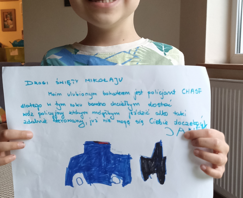Janek interesuje się dinozaurami. Bardzo lubi też: zabawki z bajki Psi Patrol, a najbardziej policjanta; układać pojazdy typu policja, samoloty, promy kosmiczne z Lego oraz klocki konstrukcyjne Marioinex. Marzy o własnym wozie policyjnym.