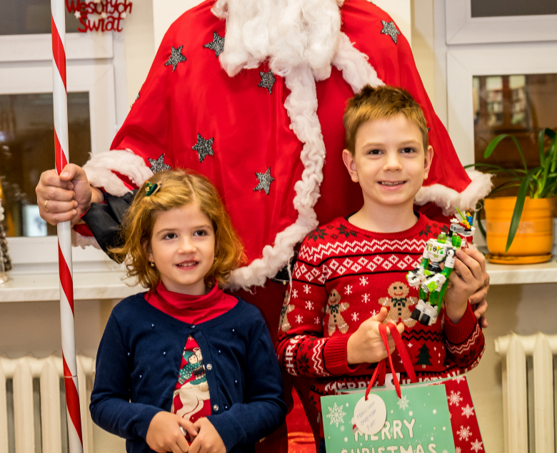 Maluchy, które nadesłały na nasz konkurs własnoręcznie wykonane ozdoby choinkowe (wszystkie one zdobią nasze nowinowe drzewko), zostały nagrodzone przez samego Mikołaja, we własne osobie, który wręczył im ogromne prezenty i z przyjemnością pozował na wspólnych zdjęć.