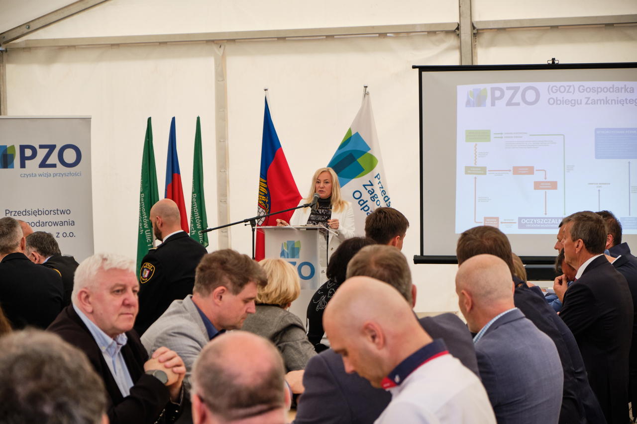 Otwierająca spotkanie Magdalena Budny - Prezes PZO Sp. z o.o.- podkreślała, że jednym z trudniejszych problemów związanych z eksploatacją składowisk w kraju są pojawiające się odcieki oraz ich unieszkodliwianie. W Gliwicach przy wsparciu zarówno władz Miasta jak i radnych Rady Miasta podjęto się nowatorskiego rozwiązania, dzięki któremu prowadzona będzie zbilansowana gospodarka wodno-ściekowa na terenie całej instalacji, mając przy tym na względzie dbałość i troskę o środowisko naturalne.