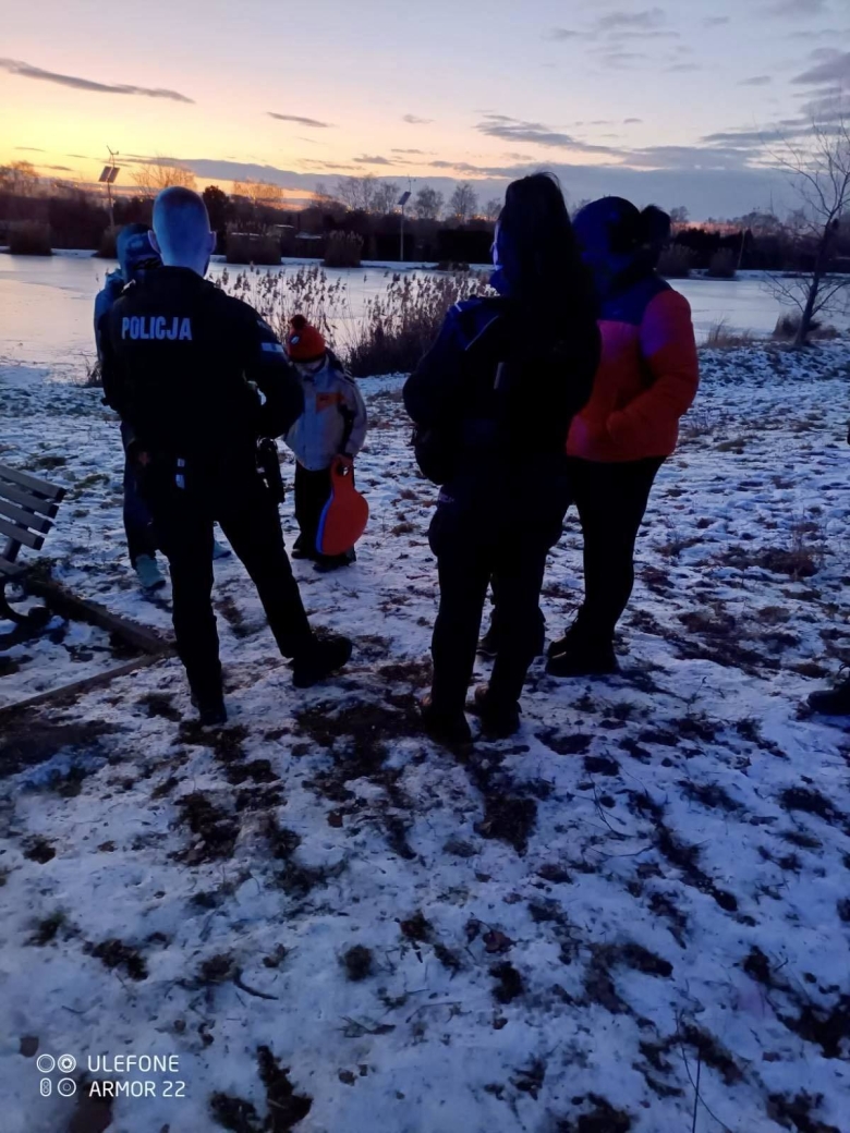 Na miejscu interwencji policjanci zastali dwóch chłopców w wieku 7 i 8 lat, którzy chodzili po zamarzniętej tafli stawu. Dzieci nie oddalały się daleko od brzegu. Obok zbiornika stał 41-letni mężczyzna – ojciec jednego z chłopców, który w tym czasie sprawował również opiekę nad drugim dzieckiem, za zgodą jego prawnego opiekuna.