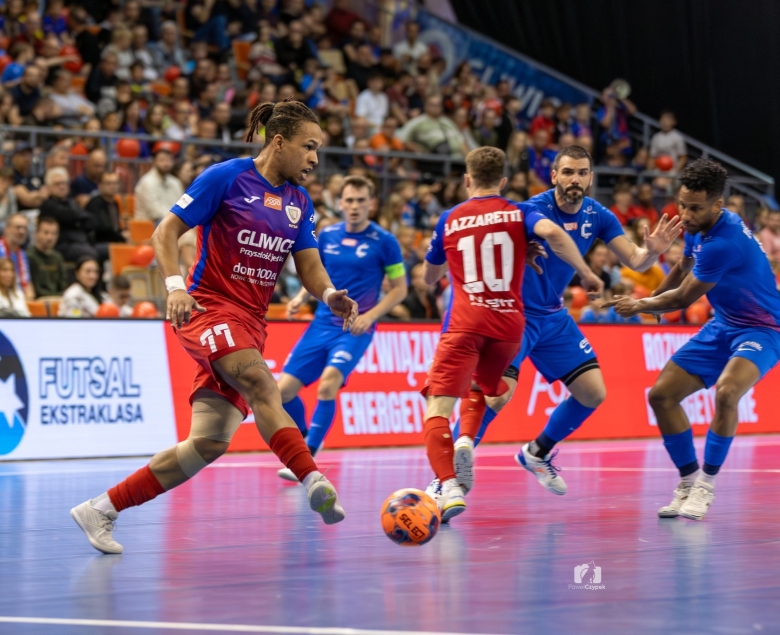 Pierwszy mecz obu drużyn odbył się w PreZero Arenie Gliwice. Gospodarze szybko otworzyli wynik. Już w 5. minucie bramkę zdobył Breno Bertoline. Potem obaj rywale mieli kilka okazji, ale goli kibice, którzy niemal w komplecie wypełnili halę nie zobaczyli. Dobrze spisywali się bramkarze: Viktor Sääf, a jeszcze lepiej nasz golkiper Michał Widuch, który w tym dniu przeżywał osobistą tragedię, śmierć ojca. Jego pamięć przed meczem uczczono minutą ciszy. Na 2:0 w 18. min podwyższył Tiago Cruz, który wykończył akcję zapoczątkowaną wyjściem z bramki właśnie Widucha.