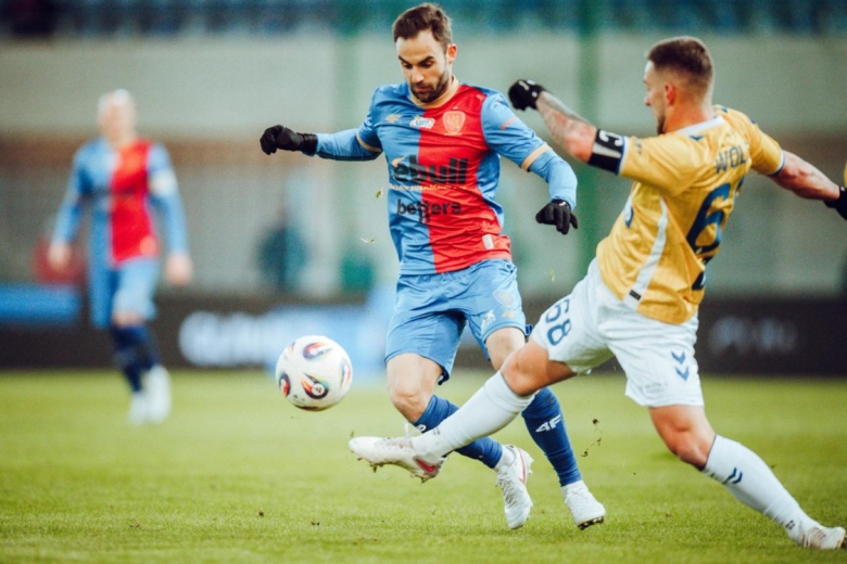 Zaczęło się fatalnie. Już w 3. minucie František Plach musiał wyciągać piłkę z siatki. Mbaye N’Diaye dośrodkowywał z prawej strony, ale wyszedł mu centrostrzał. Futbolówka odbiła się jeszcze od słupka i wpadła do bramki, kompletnie dezorientując słowackiego bramkarza. To był cios, który na długie minuty wytrącił gospodarzy z rytmu. Motor przejął inicjatywę, dłużej utrzymywał się przy piłce i spokojnie budował akcje. Piast był cofnięty i sprawiał wrażenie zespołu bez wyraźnego pomysłu na rozegranie. Dopiero po około dwudziestu minutach zaczął stopniowo przejmować inicjatywę. Najlepszą okazję miał German Barkowskij, który po zgraniu Juande Rivasa przestrzelił z kilku metrów.