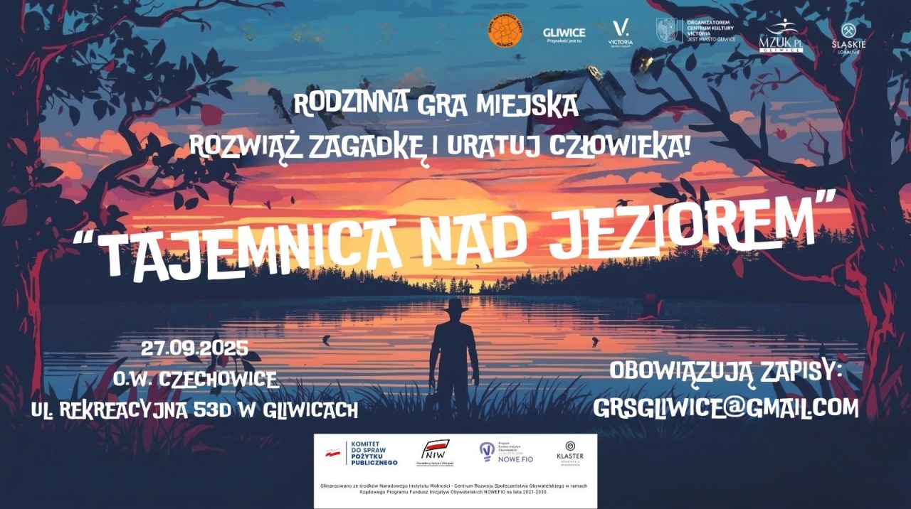 Ruszyły zapisy na Rodzinną Grę Miejską „Tajemnica nad jeziorem”, która odbędzie się w sobotę, 27 września 2025 roku, na terenie Ośrodka Wypoczynkowego Czechowice przy ulicy Rekreacyjnej 53D. To propozycja dla wszystkich, którzy chcą spędzić czas aktywnie, we wspólnym gronie i w atmosferze dobrej zabawy.