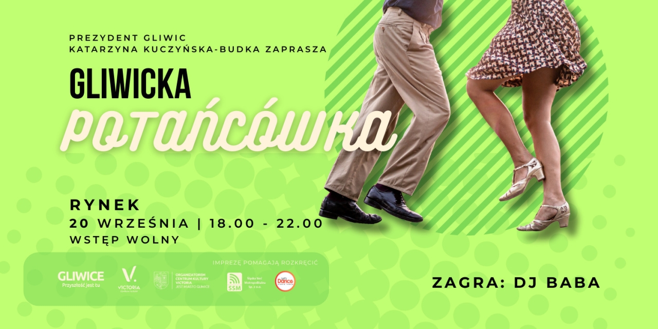 Gliwiczanie już po raz czwarty będą mieli okazję zatańczyć pod chmurką w samym sercu miasta. W sobotę, 20 września, od godziny 18.00 do 21.00 Rynek przed Ratuszem zamieni się w jeden wielki parkiet, za sprawą Gliwickiej Potańcówki, organizowanej przez Centrum Kultury Victoria przy wsparciu Urzędu Miasta Gliwice i Śląskiej Sieci Metropolitalnej.