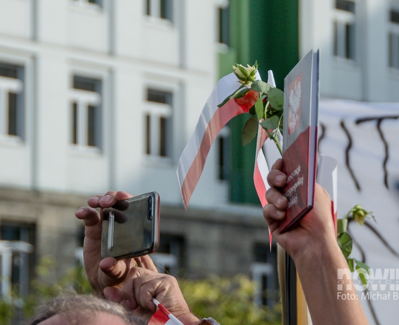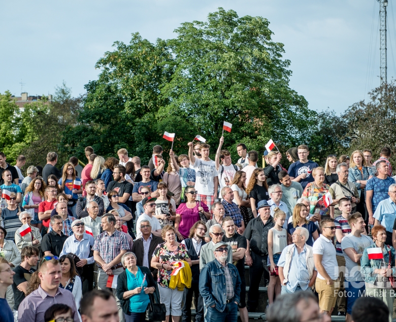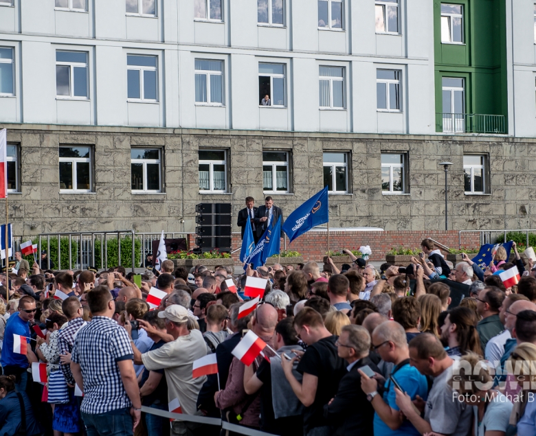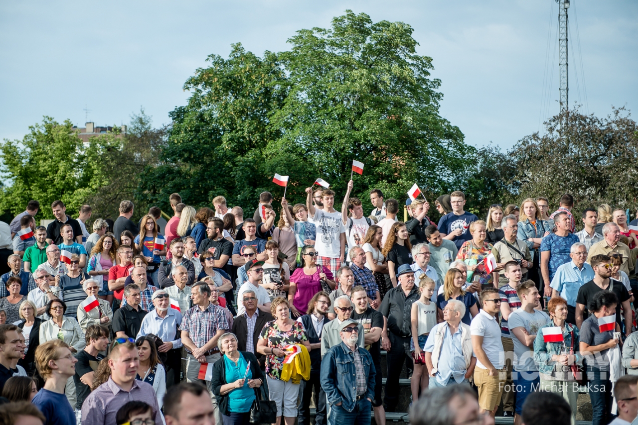 Andrzej Duda przyjechał na plac Krakowski z małym opóźnieniem, a gdy pojawił się na płycie, przywitały go oklaski i gwizdy. Tłum skandował „Andrzej Duda”, „Andrzej Duda”. Prezydenta RP przywitał gospodarz miasta, a potem wysłuchaliśmy 20-minutowego wystąpienia głowy państwa.