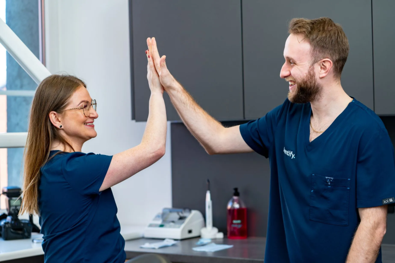Klinika Dentify w Bielsku-Białej to miejsce, gdzie nowoczesna implantologia łączy się z indywidualnym podejściem do każdego pacjenta. W Dentify specjaliści oferują kompleksowe leczenie implantologiczne – od szczegółowej diagnostyki, przez planowanie zabiegu, aż po wykonanie i dopasowanie protezy na implantach. Implanty zębowe w Dentify to gwarancja najwyższej jakości oraz wykorzystania najnowszych technologii, co przekłada się na trwałość i estetykę odbudowy zębów. W wielu przypadkach możliwe jest wykonanie protezy na implantach nawet w jeden dzień, co pozwala pacjentom szybko wrócić do normalnego życia i cieszyć się nowym uśmiechem.