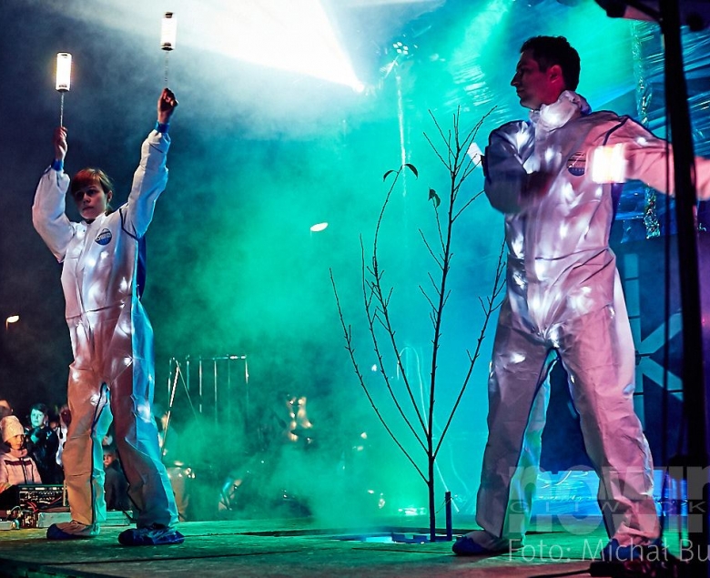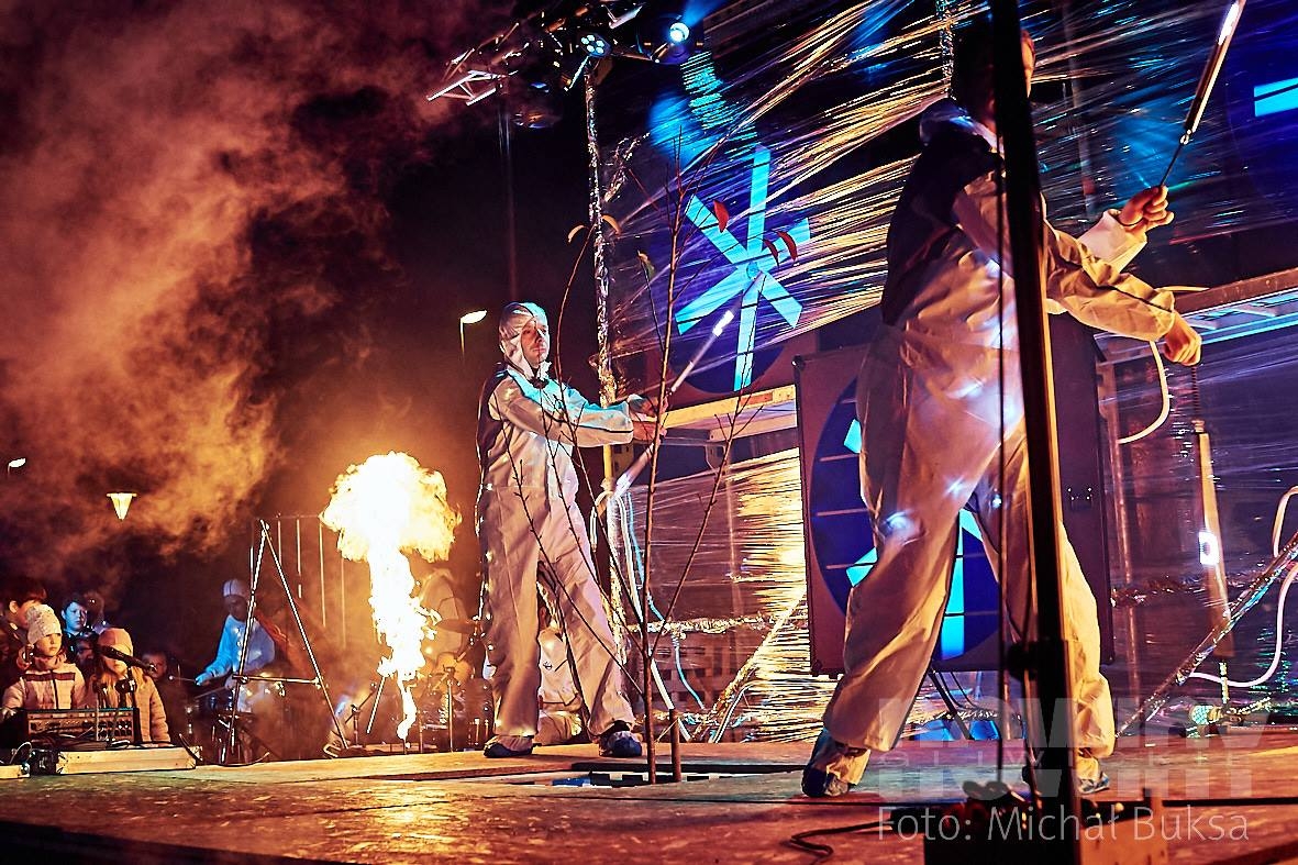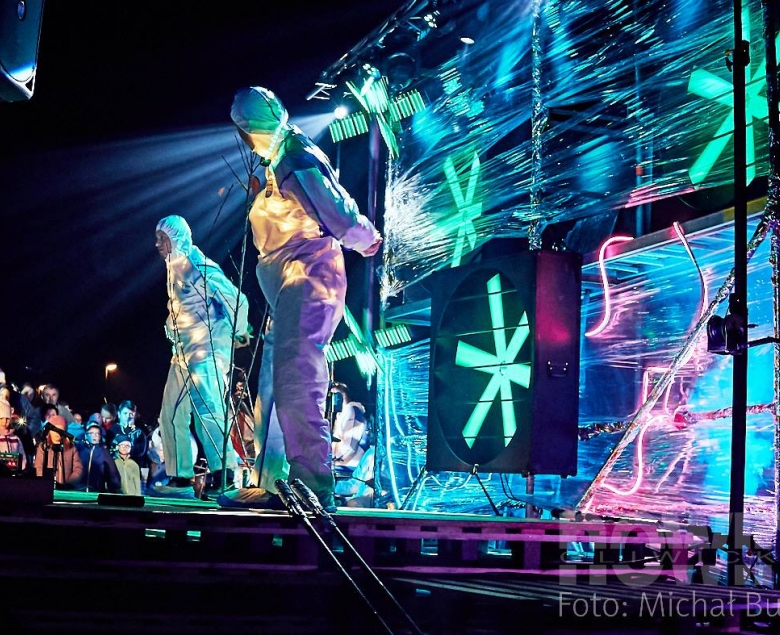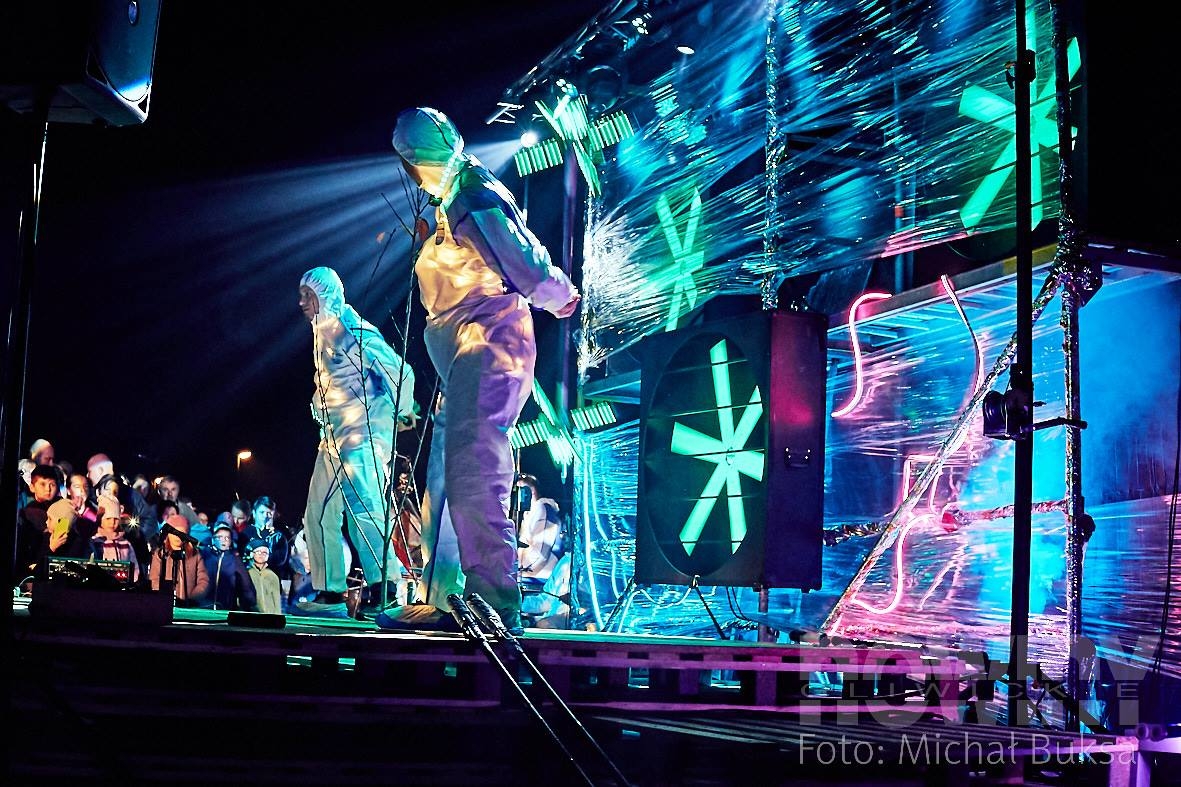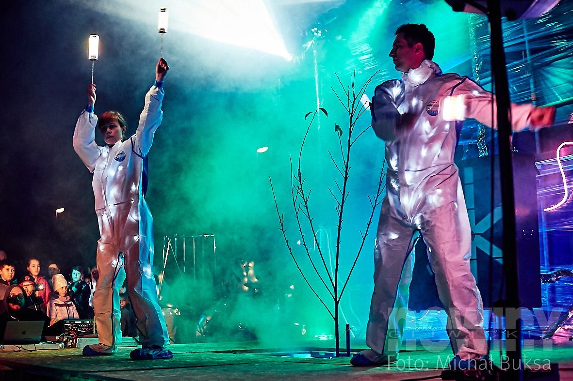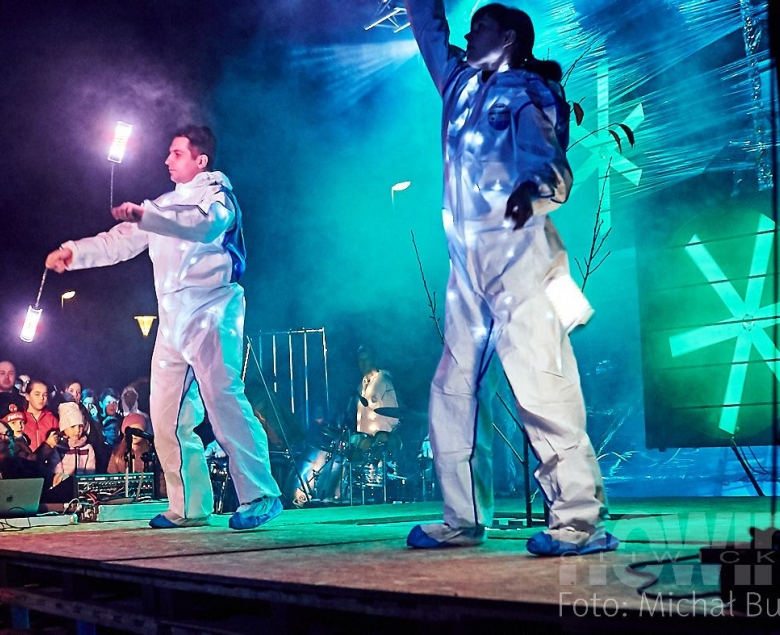 Atrakcje czekały na mieszkańców już od 18.00, ale najbardziej widowiskową częścią był "Piter - patter show" z bębnami i motywami laserowo - świetlnymi w tle.