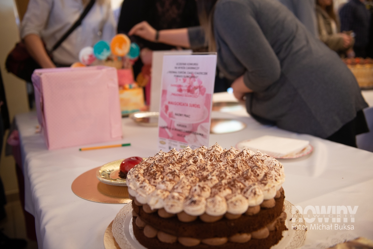 Na stołach - mnóstwo ciast, ciasteczek, pralinek, tortów, placków, kołoczy, muffinek. Od kolorów i zapachów kręciło się w głowie. "Tęczowa księżniczka" sąsiadowała z "Truskawkowym ombre muśniętym blaskiem", a "Magicznie i kolorowo" z "Letnim zauroczeniem".