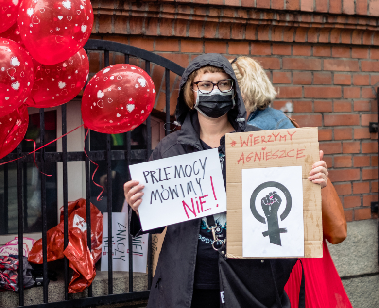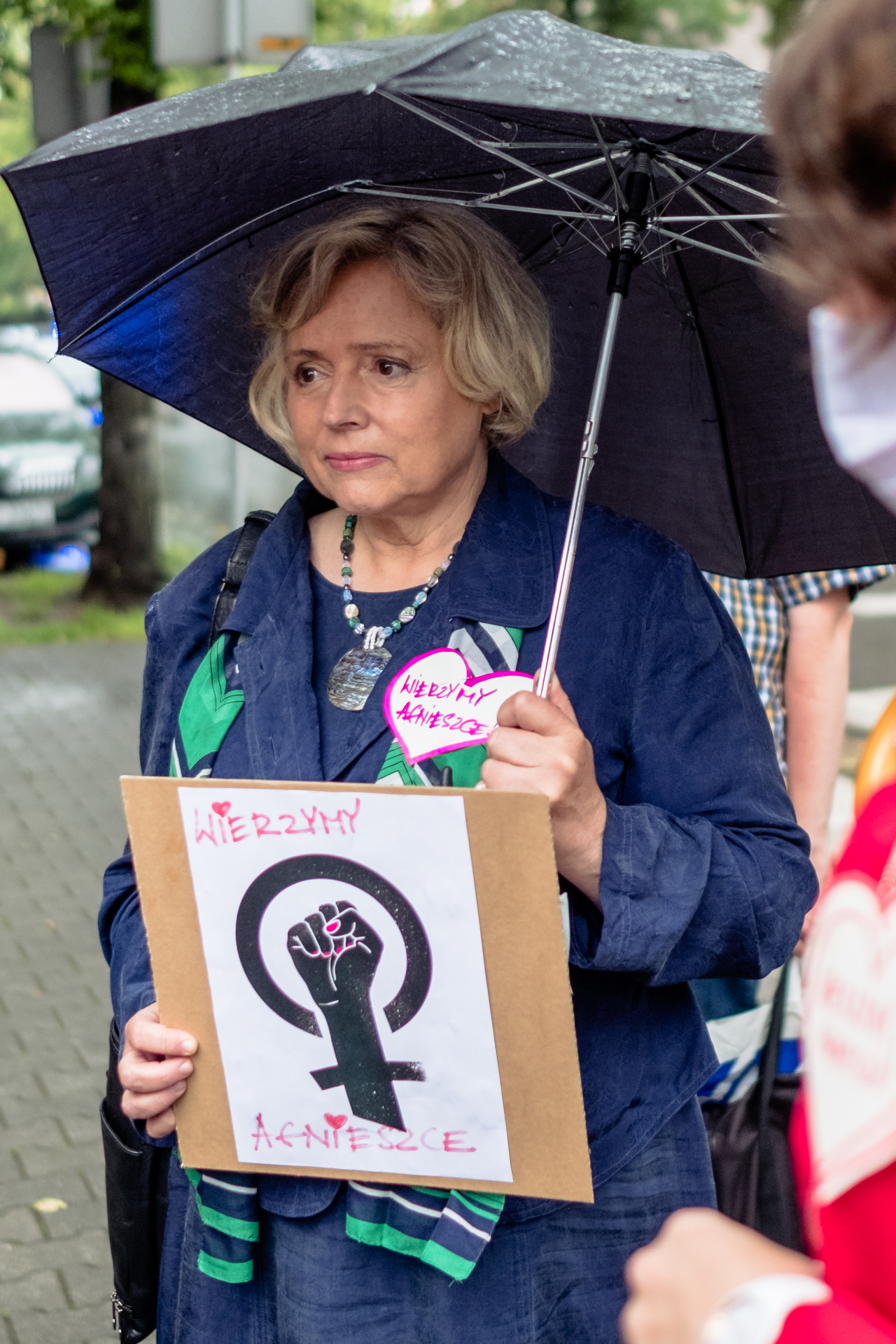Agnieszce, młodej mieszkance Lublińca, której sprawa apelacyjna toczyła się właśnie w Sądzie Okręgowym w Gliwicach, kiedyś nie uwierzył wymiar sprawiedliwości (nazywany teraz wymiarem (nie) sprawiedliwości). Uwierzyły jej kobiety, a także świadomi mężczyźni. W świat, za pomocą internetu, poszedł przekaz: #wierzymyagnieszce, stając się hasłem dwóch wieców, zorganizowanych przez organizacje kobiece przed sądem przy ulicy Kościuszki w godzinach rozprawy. Był pokojowy, zgodny z prawem i wyrażał poparcie dla ofiary przemocy. Uczestnicy przynieśli ze sobą transparenty, by to poparcie okazać.
