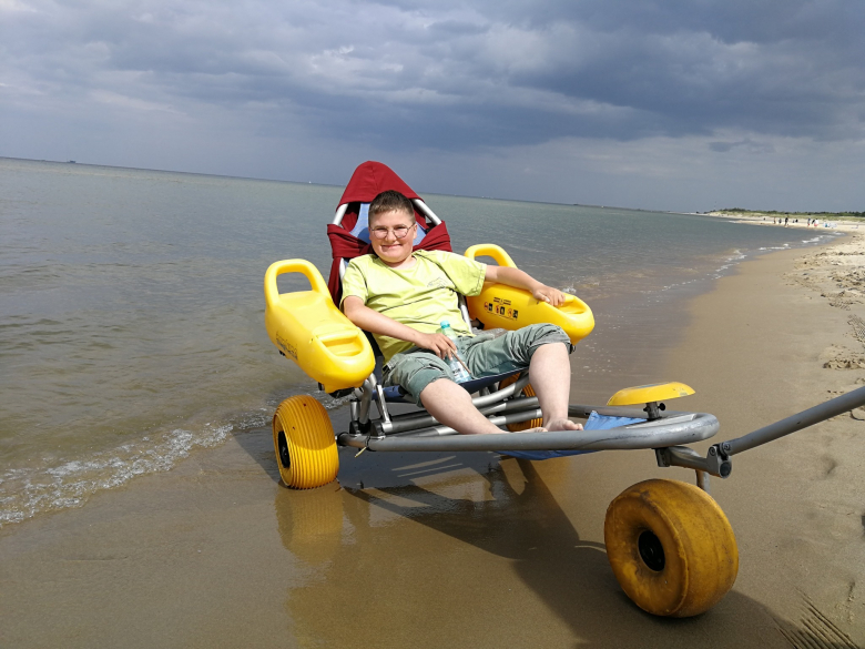 Łukasz, jak jego mama, ma pozytywne podejście do życia. Chwile zwątpienia następują jedynie wtedy, gdy musi pokonać bariery, jakich pełnosprawne osoby nie są w stanie zauważyć.