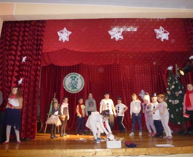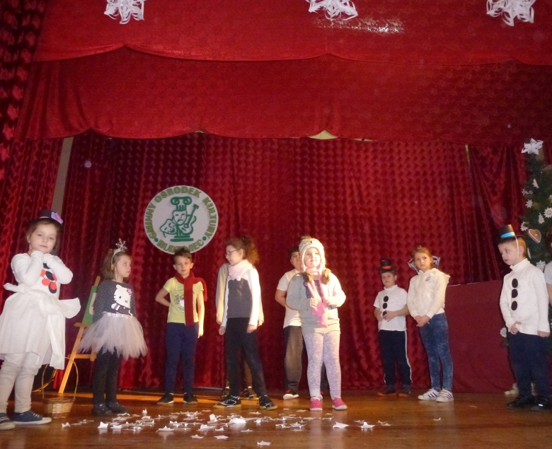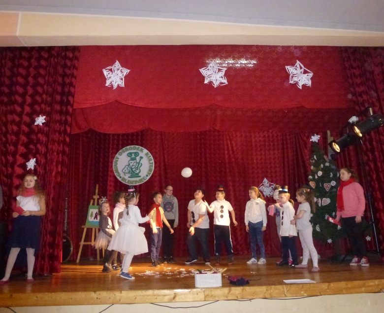 Podczas zajęć pn.: „Teatralne ferie z bałwankiem” dzieci w wieku od 7 do
