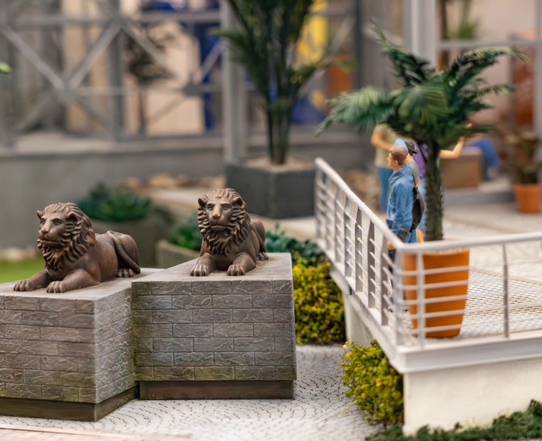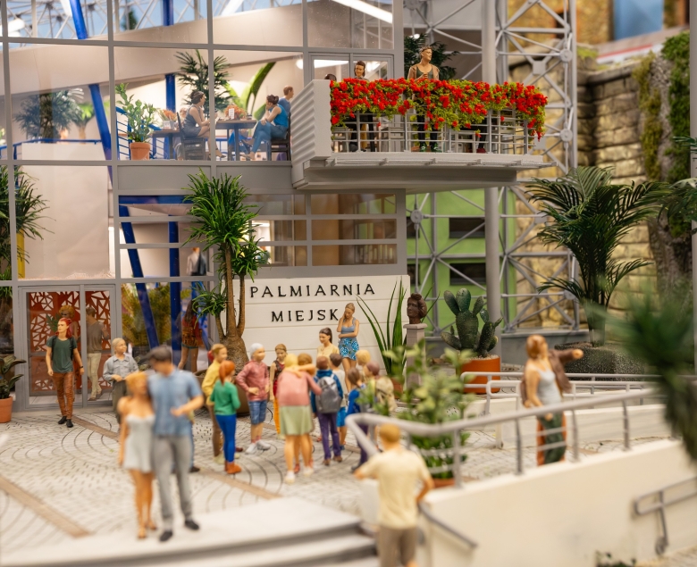Makieta Palmiarni to efekt wielu godzin pracy modelarzy Kolejkowa, którzy odtworzyli unikalną architekturę pawilonów, egzotyczną roślinność oraz charakterystyczne elementy otoczenia, w tym słynne rzeźby lwów strzegących wejścia. Wszystko w towarzystwie scenek z życia codziennego – zwiedzających spacerujących wśród palm, egzotycznych ryb w akwariach czy odwzorowanych gatunków roślin, które od lat zachwycają w prawdziwej Palmiarni.
